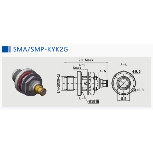 Outline Dimension of Stainless Steel SMA to SMP female to female bulkhead mount Adapters SMA/SMP-KYK2G